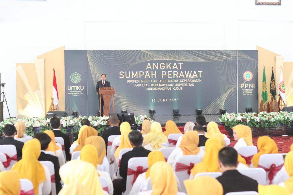 Universitas Muhammadiyah Kudus kembali luluskan 120 profesi ners dan 3 Ahli Madya Keperawatan.  Prosesi angakt sumpah dilangsungkan di ruang Convention Hall Gedung Crystal Building UMKU pada Kamis 15 Juni 2023.